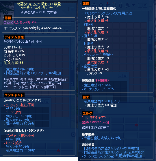 ・前回まではイベント産でも製作品でも同じ性能でしたが、等級が実装された事によりイベント産はエピックとなり製作品よりも若干性能が落ちます。