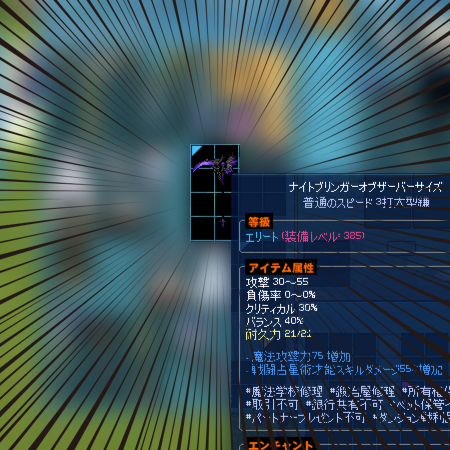 前の記事だとクールタイム減少が10%なのは地味とか、両手剣欲しいとか言ってたのに結局鎌にしたんですね
